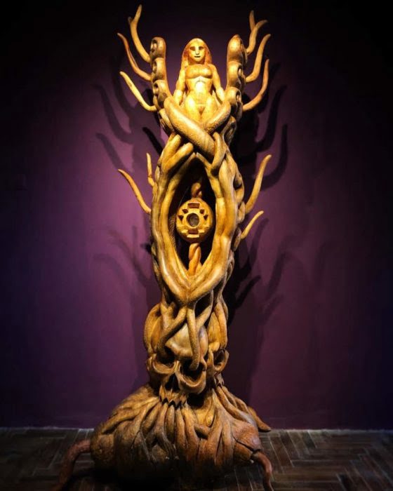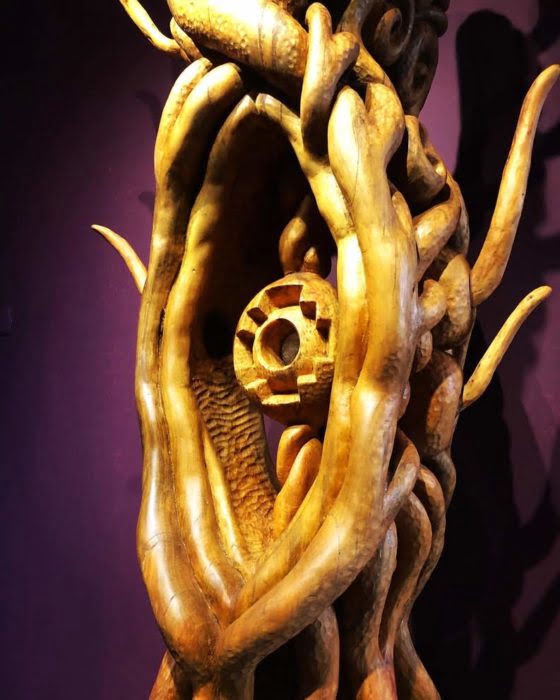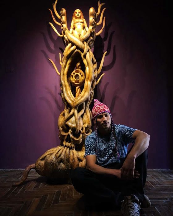Description: We emerge from the ukupacha, the inner world, and there we return. The ancestors are the seeds from which we come, our precursors that guide us, with experience being the most precious inheritance, our roots and foundation. We then arrive to kaypacha, this dimension, through a magical portal, a cosmic womb that contracts and expands, giving birth to Here’s and Now’s. In it’s center the fractal ovule flickers, as the ordering matrix, the chakana. From this metamorphosis originates the pair, female – male, to complement the opposites and understand the flow of life. An umbilical cord like an Amaru, our ancestral mythological two-headed serpent, unites these times – spaces to continue growing to the infinite of the hanaqpacha, the upper world.